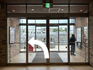 入口が2つありますが、奥の入口よりお入りください