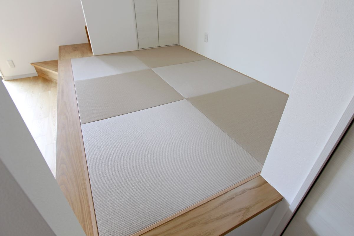 温かみを感じる優しい色で統一されたお宅。 明るいリビングに小上がり和室を採用し、 ゆったりとくつろげる癒しの空間に仕上がっています。