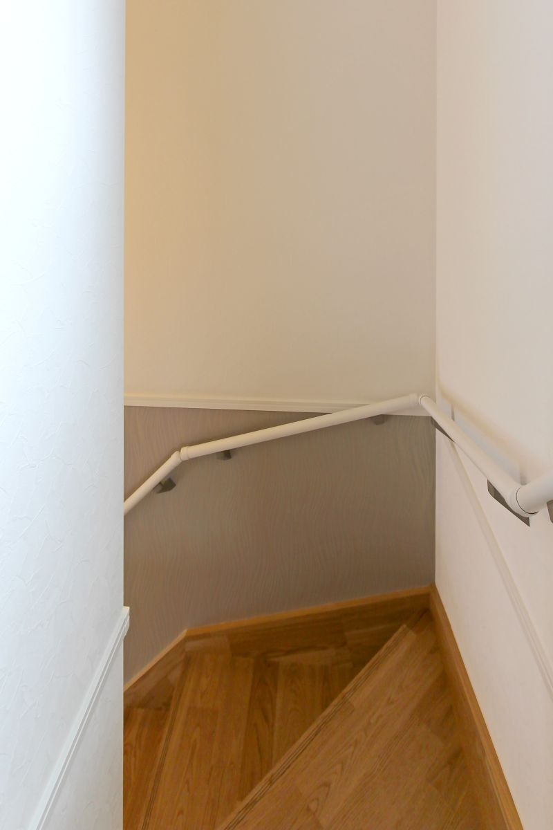 生活感を感じさせないスタイリッシュなリビング。 床と同系色の木目天井が印象的です。 華やかなクロスに囲まれて、日々の暮らしが楽しくなるお宅です。